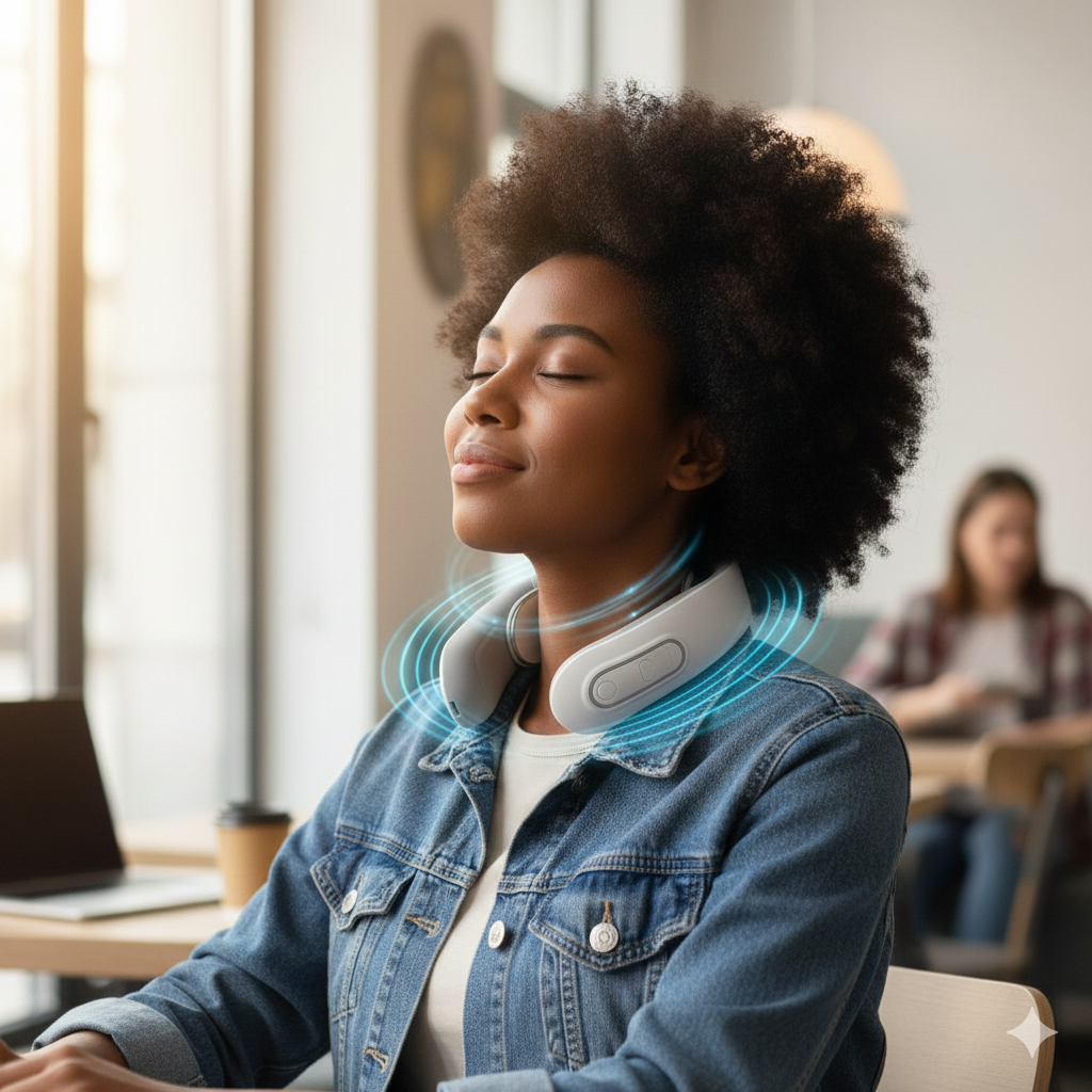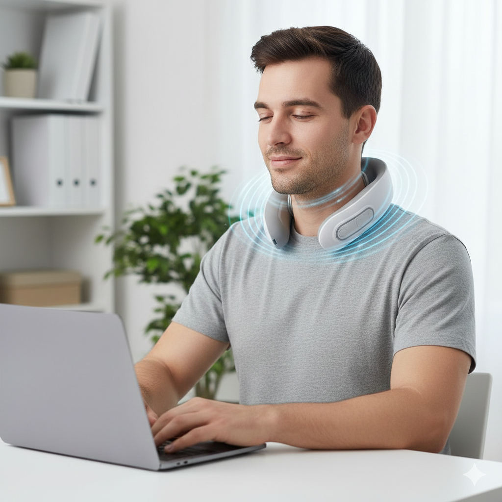 Experience instant comfort with our neck massager designed to target cervical tension, stiff muscles, and everyday stress. Its ergonomic shape adapts to your neck and shoulders while gentle heat relaxes tight areas and improves circulation. You can even use it at work without any inconvenience—quiet, discreet, and easy to wear. Perfect for easing strain from long days, driving, or office hours. Just turn it on, lean back, and feel the tension melt away.