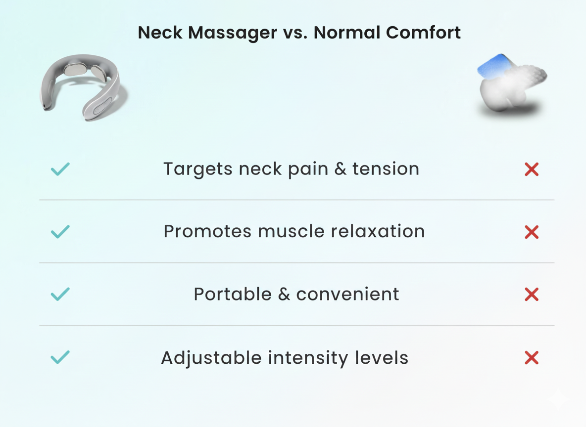 Unlike basic white-label massagers, ours delivers deeper relief, stronger massage nodes, and real heat therapy. It fits the neck more comfortably, works more smoothly, and lasts much longer. If generic models disappointed you, this one will feel like a real upgrade.