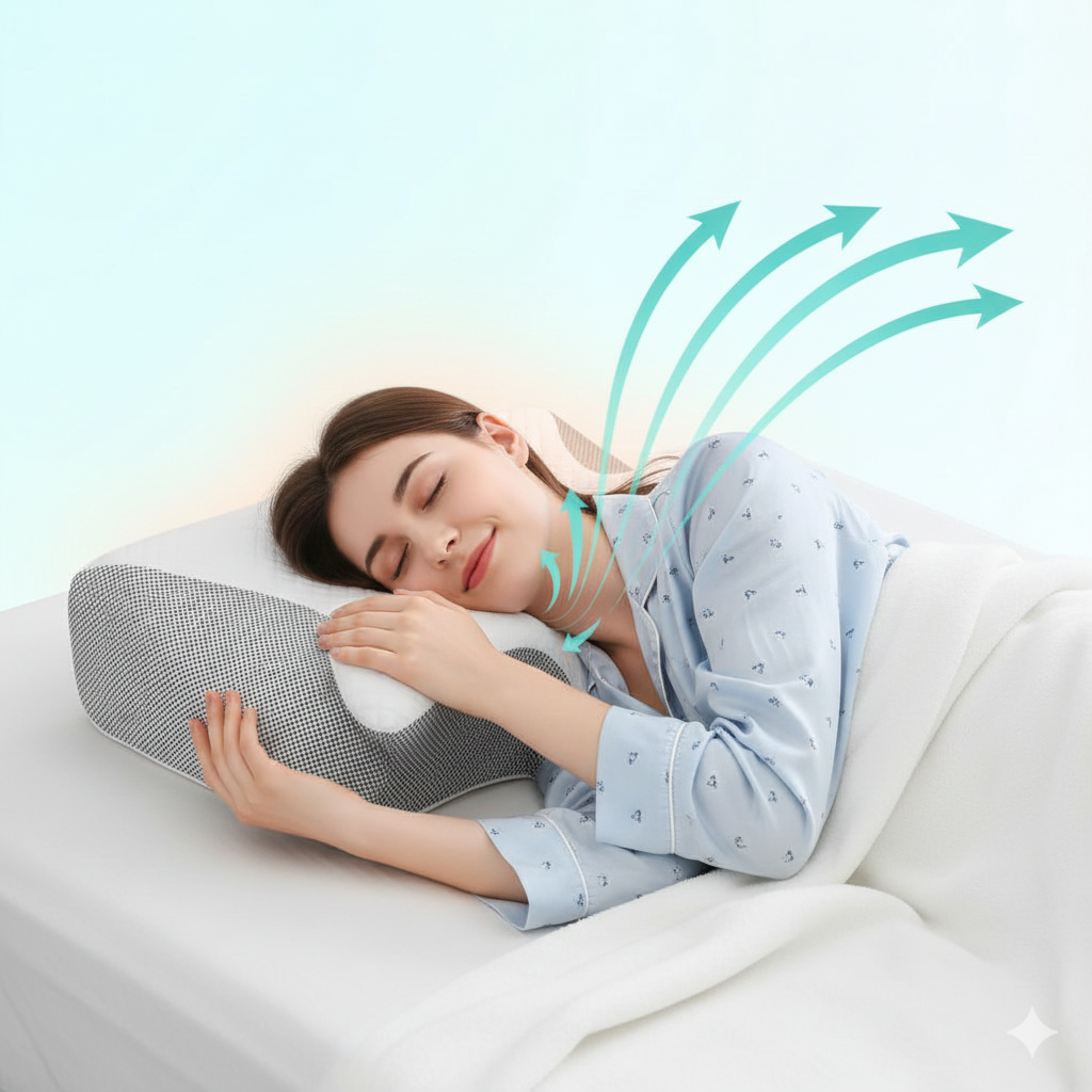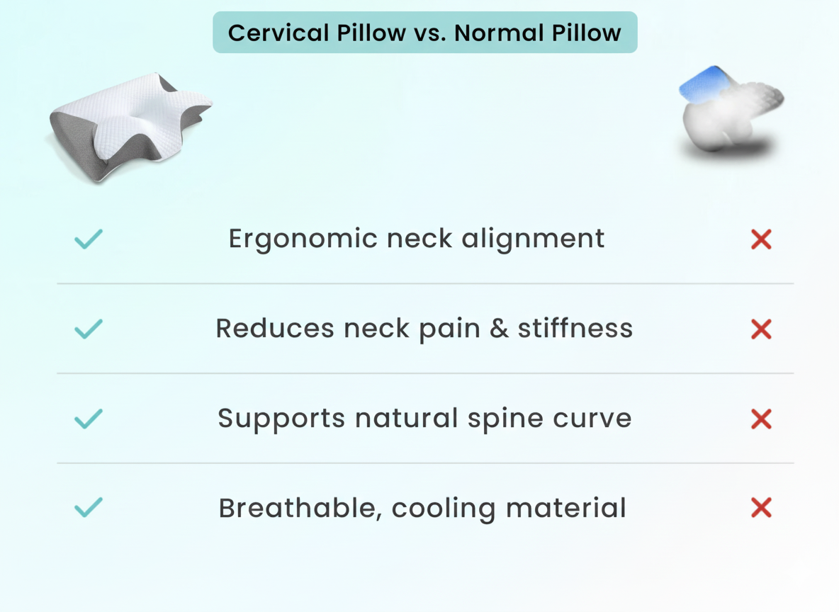 A cervical pillow is designed to support the neck and align the spine, helping reduce tension, stiffness, and headaches caused by poor posture or muscle strain.